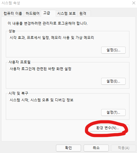 [Windows 설정] - [시스템] - [정보] - [고급 시스템 설정] - [고급] - [환경 변수] - [시스템 변수] - [Path] 눌러서 설정하고 싶은 경로를 입력하면 된다.