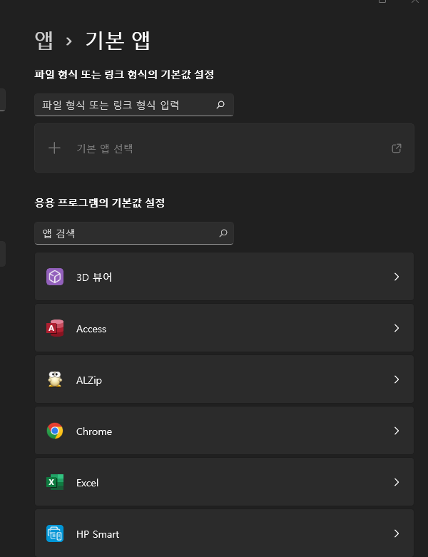 파일 형식 또는 링크 형식의 앱(브라우저)을 열 때 기본 값을 설정하는 방법을 알아보자.