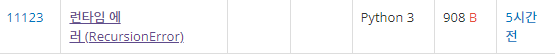 โ ์๊ณ ๋ฆฌ์ฆ ๋ฐ ๊ธฐ๋ณธ์ ์ธ ๋ก์ง์ ๋ค ๋ง๋๋ฐ ์ ๋ฐํ์ ์๋ฌ(recursion error)๊ฐ ๋จ๋์ง ์ง์ํ์ง ๋ชปํ๊ณ ์์ ๋
