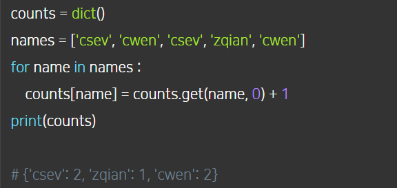 counts[word] = counts.get(word,0) + 1 #리스트에 있는 요소들이 총 몇 번씩 있는지 세기