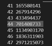 대충 어림잡아 2부터 49번째 피보나치 수까지 출력해보았다.